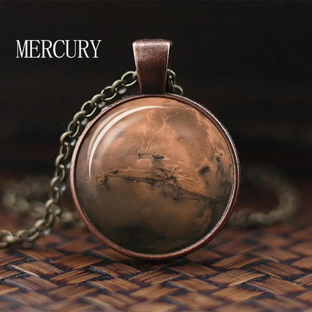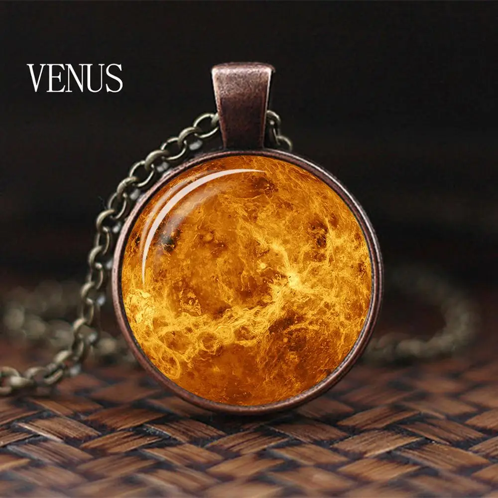 Globe Double Sided Necklace Solar System Planet Venus Mercury Mars Saturn Uranus Neptune Earth Sun Pendant Dome Glass Necklaces :Click Here