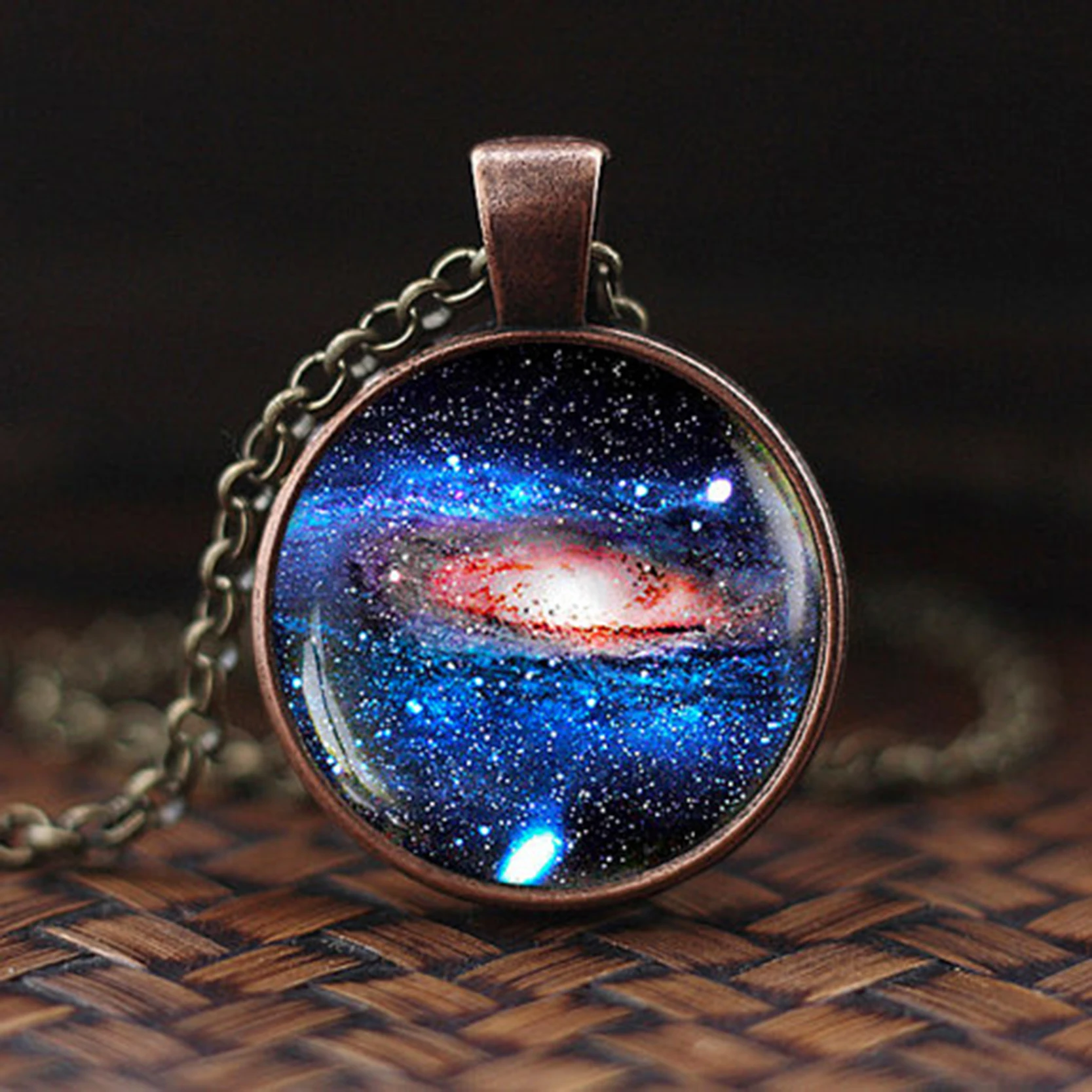 prefix] Nebula Planet Necklace Galaxy Astronomy Dome Glass Pendant Solar System Jewelry Space Universe Neck