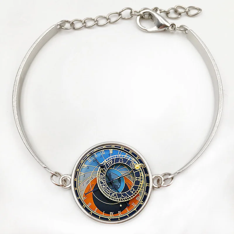 prefix] Astrology Clock pendant Astrology Clock necklace Astronomy jewelry birthday gift sliver platedchris