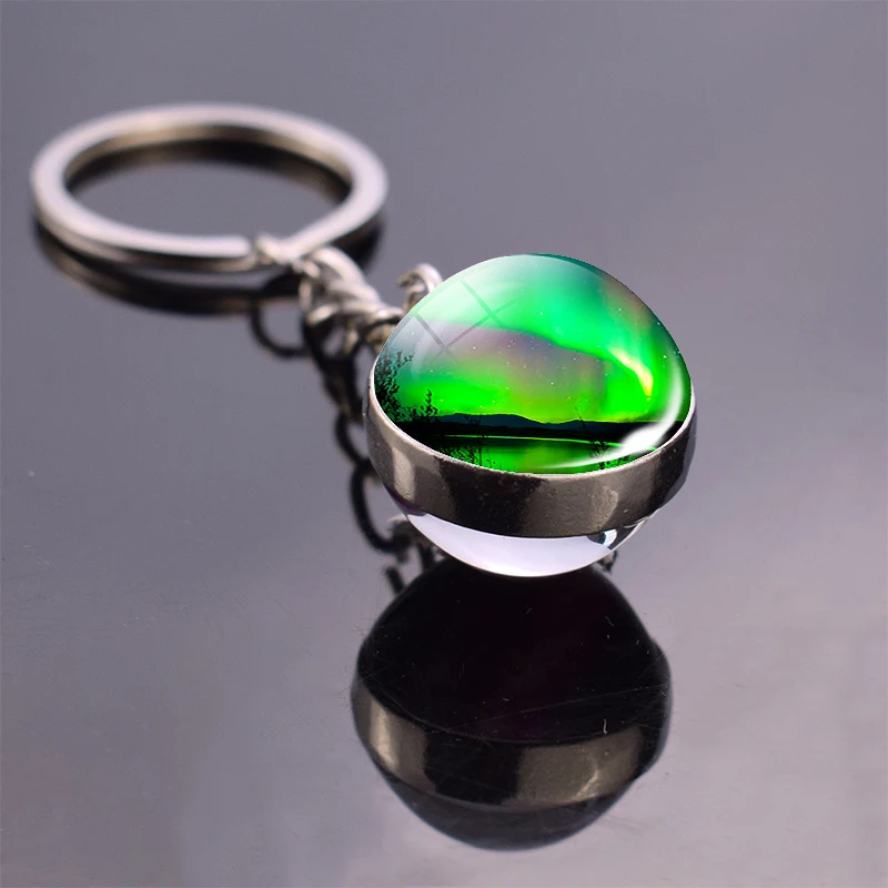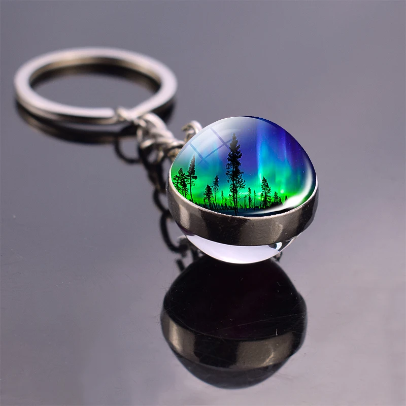 prefix] Northern Lights Planet Keyring Galaxy Nebula Space Keychain Double Side Glass Ball Key Chain Astron