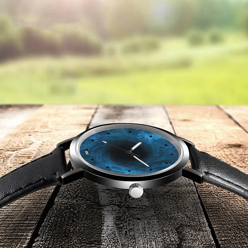 prefix] Unique Swirl Watches Men Classy Astronomy Creative Space Watch Casual Men Watches Leather Strap Qua